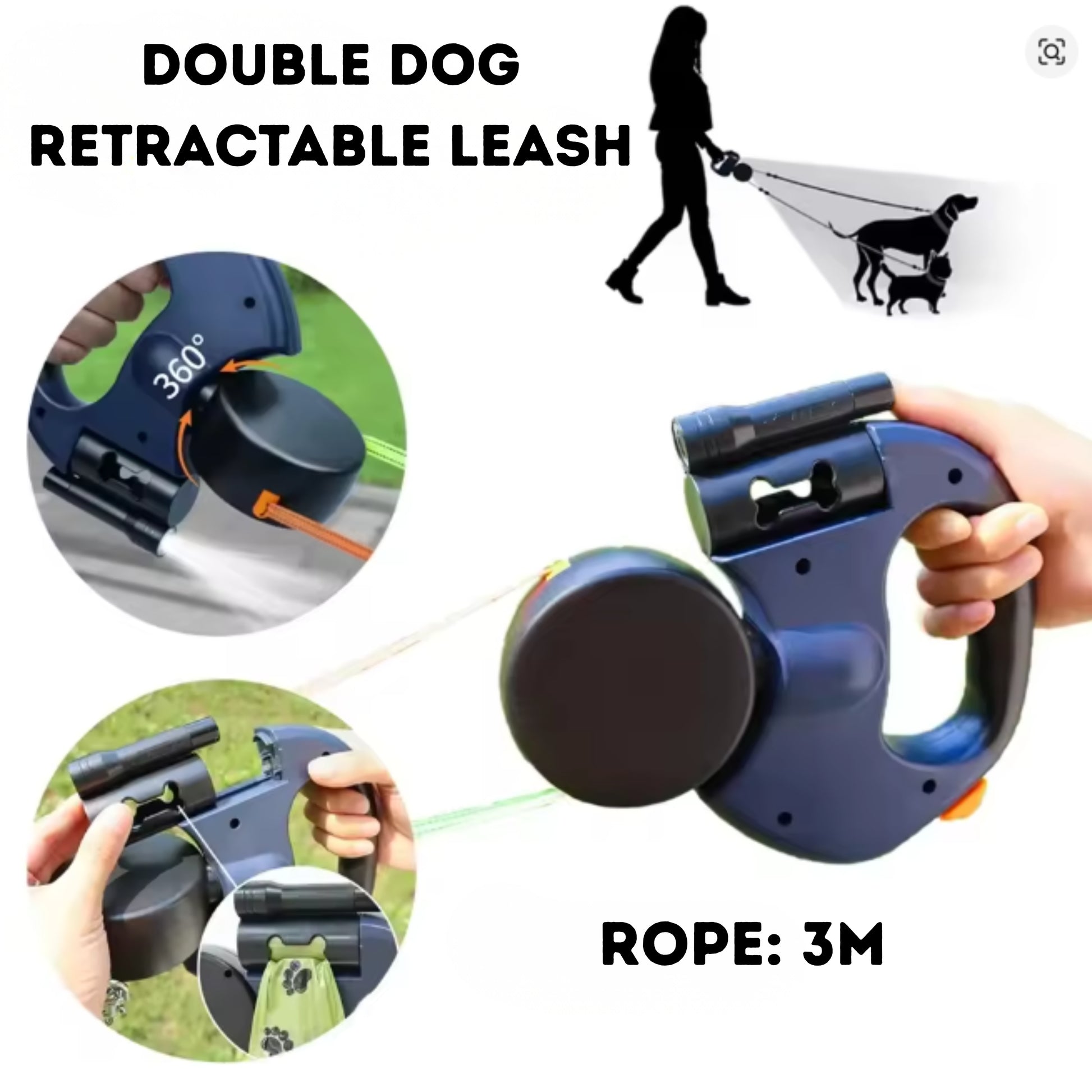 Grab your Dual Retractable Dog Lead with Torch today and enjoy safer, easier and more practical walks!