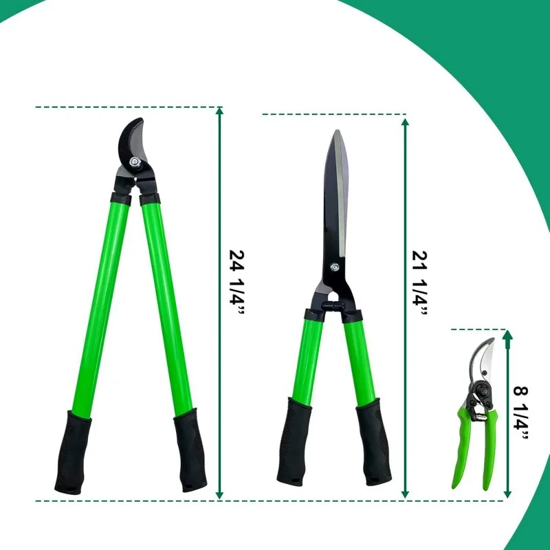 Whether you’re trimming roses, shaping hedges, or tackling large tree branches, this complete garden pruning tool set ensures precision, comfort, and durability for all your outdoor tasks.