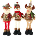 Add a charming festive touch to your home with this adorable set of Christmas plush decorations, featuring Santa Claus, a Snowman and a Moose. Designed with stretchable long legs, each character can sit anywhere and have its legs adjusted easily to the desired length, making them both fun and practical for decorating.