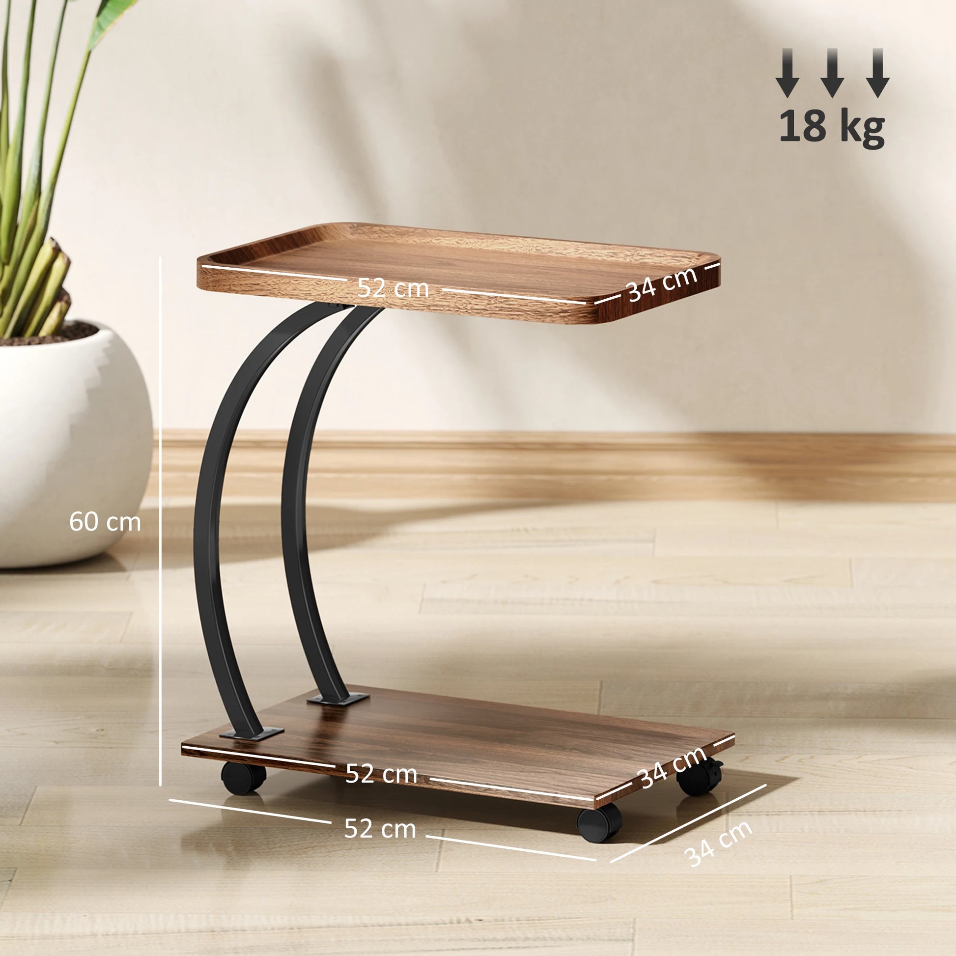 HOMCOM C-Shaped Side Table – Mobile Two-Tier Coffee & Sofa Table