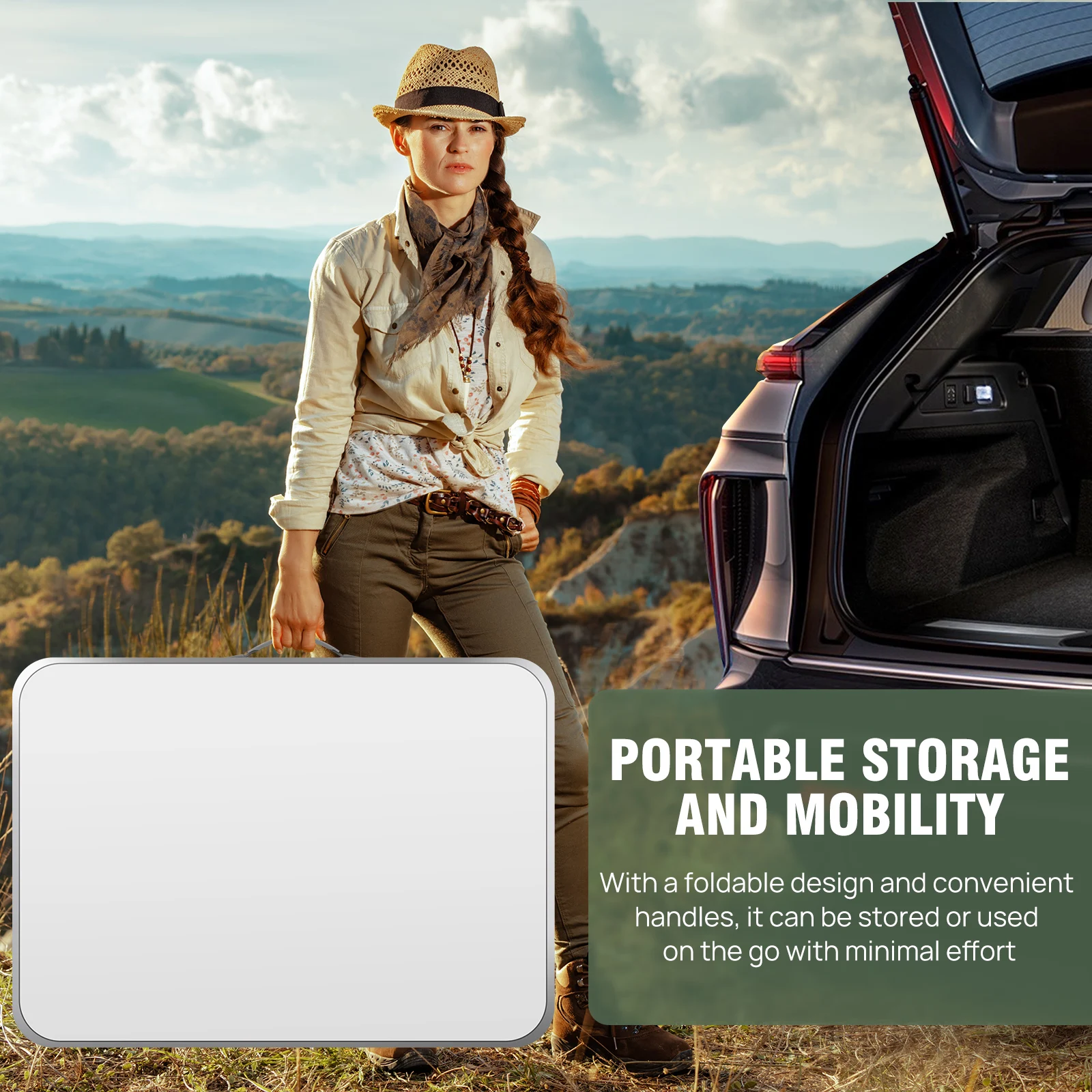Weighing only 2.3kg (5.03lbs), it features a handy carry handle for effortless transport. Folds flat into a compact size for easy storage and travel. -