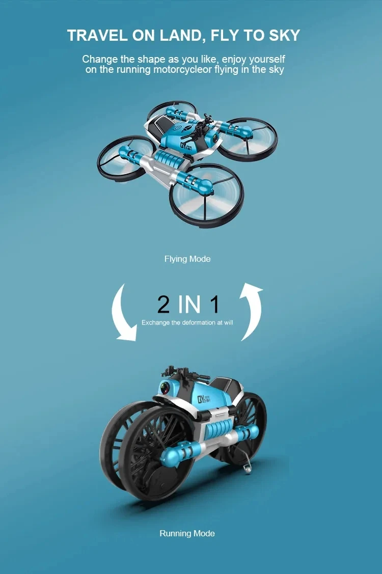 Flying Motorcycle Drone – 2-in-1 Land & Air Quadcopter with 480P Camera