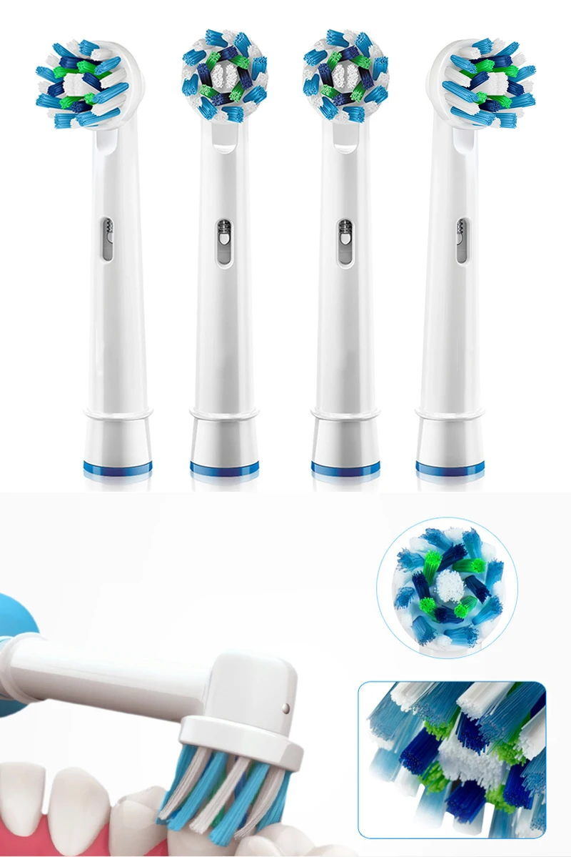 Comes with 5 or more pieces, including EB50 CrossAction replacement heads (not original Oral-B heads, but high-quality compatible alternatives).